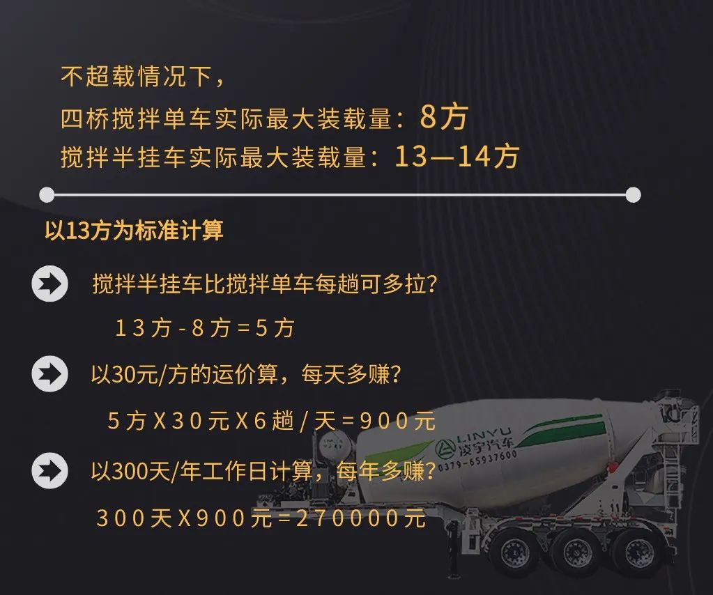 此時(shí),法規(guī)規(guī)定的攪動(dòng)容量可以達(dá)到14方的3軸半掛攪拌車,優(yōu)勢(shì)凸顯,成為了市場(chǎng)新寵。