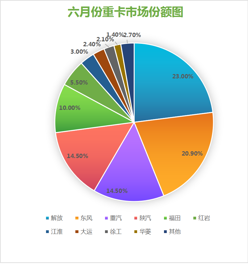 6月重卡市場(chǎng)整體銷量增勢(shì)如此驚人,那各家主流企業(yè)的銷量又是如何的呢?我們一起來看看。