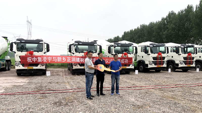 前幾日,11臺重汽豪沃TX攪拌車交車儀式在新鄉(xiāng)正潤建材有限公司舉行,正潤建材的郭總、吳總、孫總一行與凌宇汽車銷售人員姜全民、售后人員趙新杰等共計30余人參加了此次交車儀式。