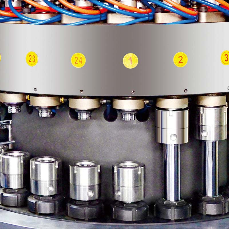 該機(jī)器用于生產(chǎn)礦泉水瓶蓋,蘇打水瓶蓋,果汁瓶蓋,藥品瓶蓋,化妝品瓶蓋,油瓶蓋等。
